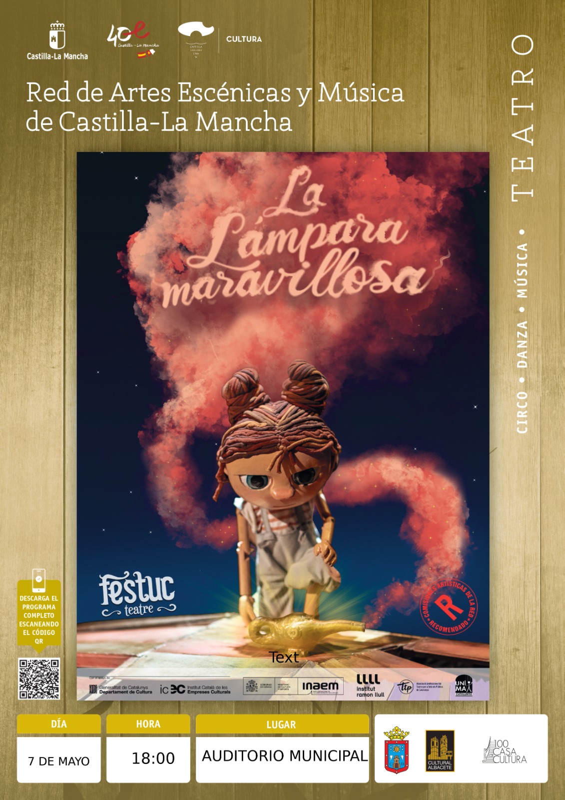La Concejalía de Cultura dentro de su programa Primavera 2023 nos presenta este Domingo 7 de mayo en el Auditorio Municipal la obra “La Lámpara Maravillosa” .