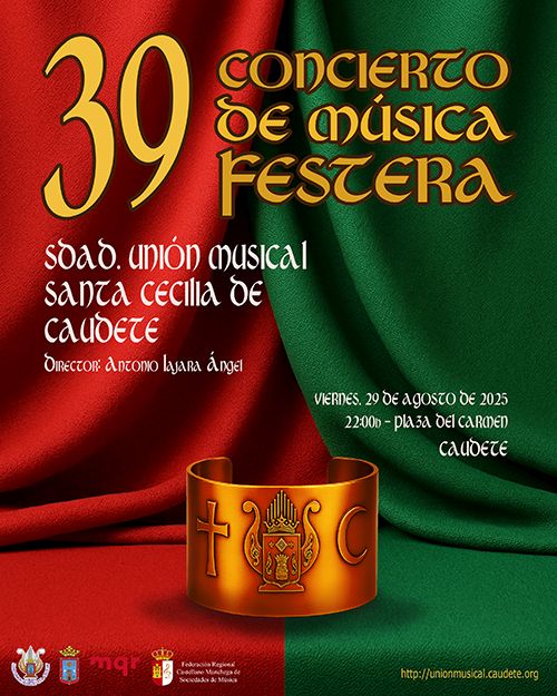 La Banda Unión Musical “Santa Cecilia” de Caudete estará bajo la Batuta de su Director D. Antonio Lajara Ángel.