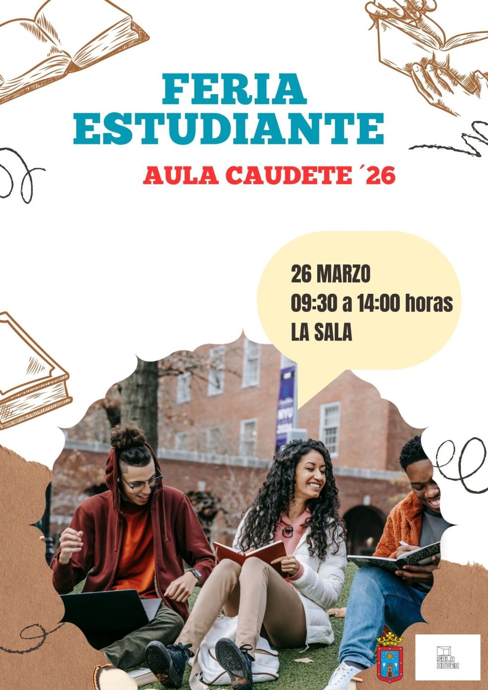 Las Concejalías de Educación y Juventud del Ayuntamiento de Caudete organizan una nueva edición de la Feria del Estudiante “Aula Caudete”, que tendrá lugar el próximo 26 de marzo en el espacio municipal “La Sala”, en horario de 9:30 a 14:00 horas.