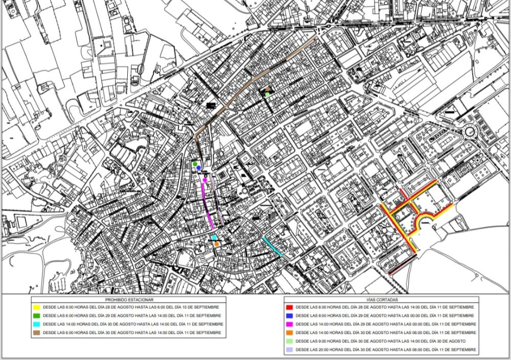 HORARIOS Y VÍAS QUE ESTARÁN CORTADAS AL TRÁFICO DURANTE LOS DIAS DE FIESTAS PATRONALES (SEPTIEMBRE DE 2025).