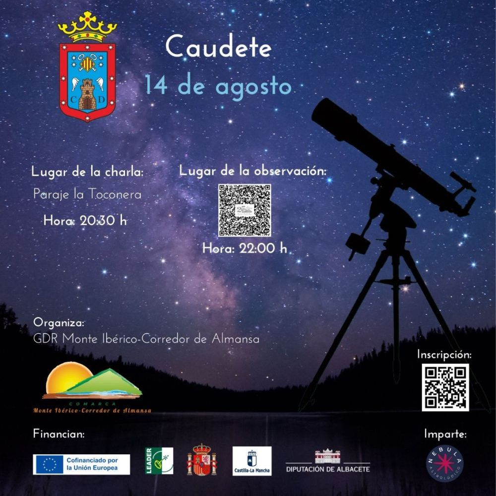 Será el 14 de agosto cuando la Concejalía de Turismo del Ayuntamiento de Caudete celebre su velada astronómica en el punto Startlight ubicado en la explanada del albergue de la Toconera, en pleno espacio natural de La Toconera, un lugar excelente para contemplar las estrellas sin contaminación lumínica.