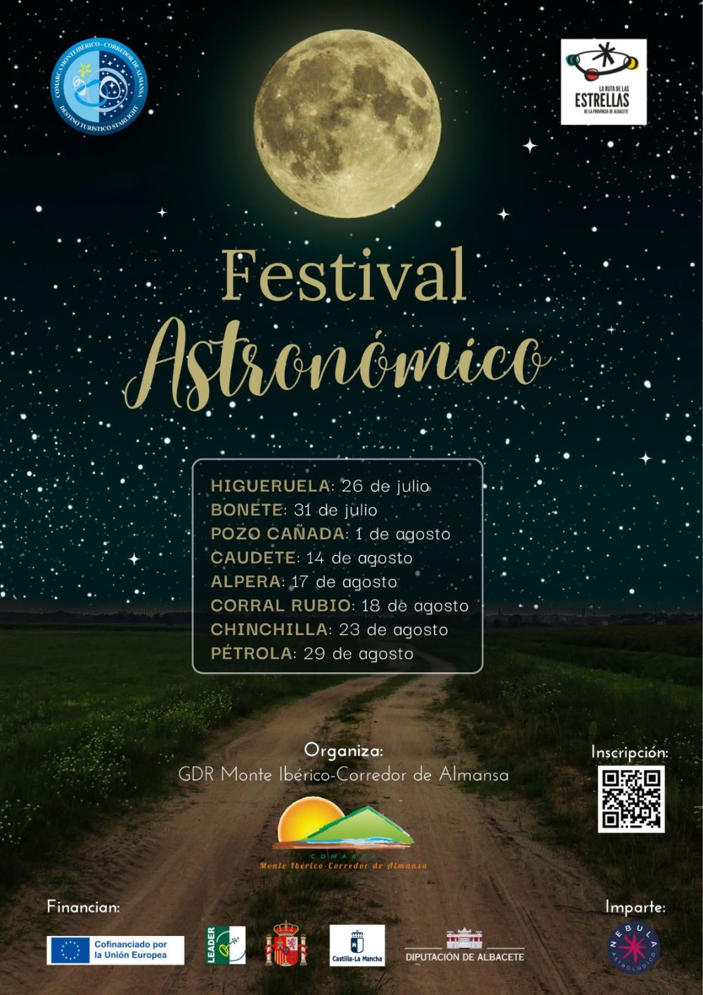 El Grupo de Desarrollo Rural Monte Ibérico-Corredor de Almansa organiza, junto a ocho de sus municipios, el “Primer Festival Astronómico” de la Comarca, tal y como ha informado el Concejal de Turismo Diego Cuenca. Estas veladas astronómicas tendrán lugar entre el 26 de julio y el 29 de agosto.