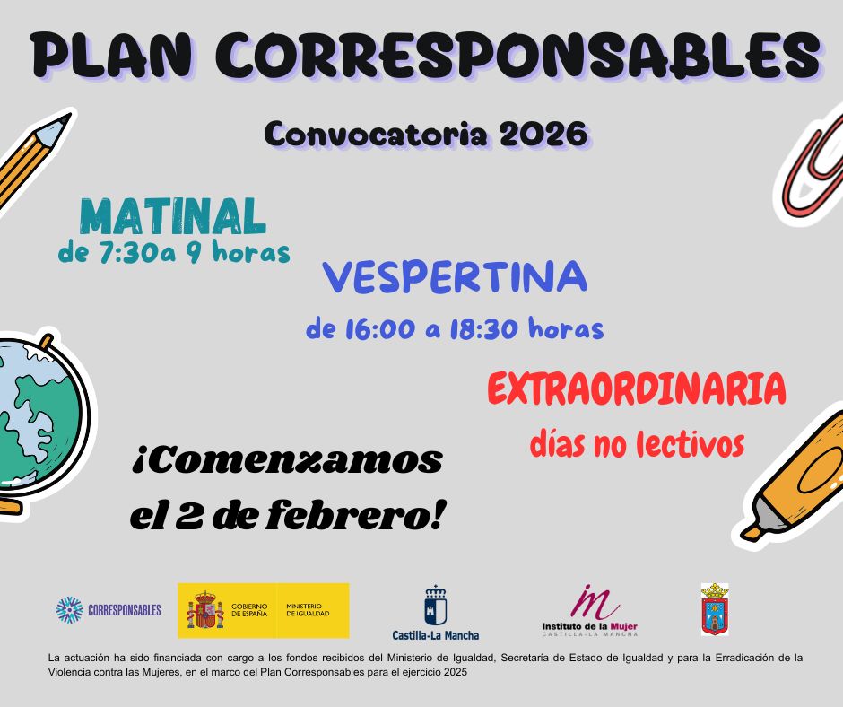 La concejal de Bienestar e Igualdad Social, María Martínez García, informa del inicio de la nueva convocatoria provisional del Plan Corresponsables para el año 2026, un servicio dirigido a favorecer la conciliación de la vida familiar y laboral de las familias del municipio.