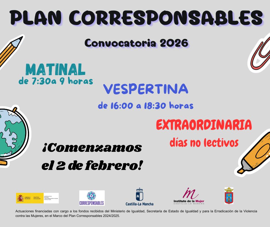 El 2 de febrero se inicia la convocatoria 2026 de las aulas del Plan Corresponsables