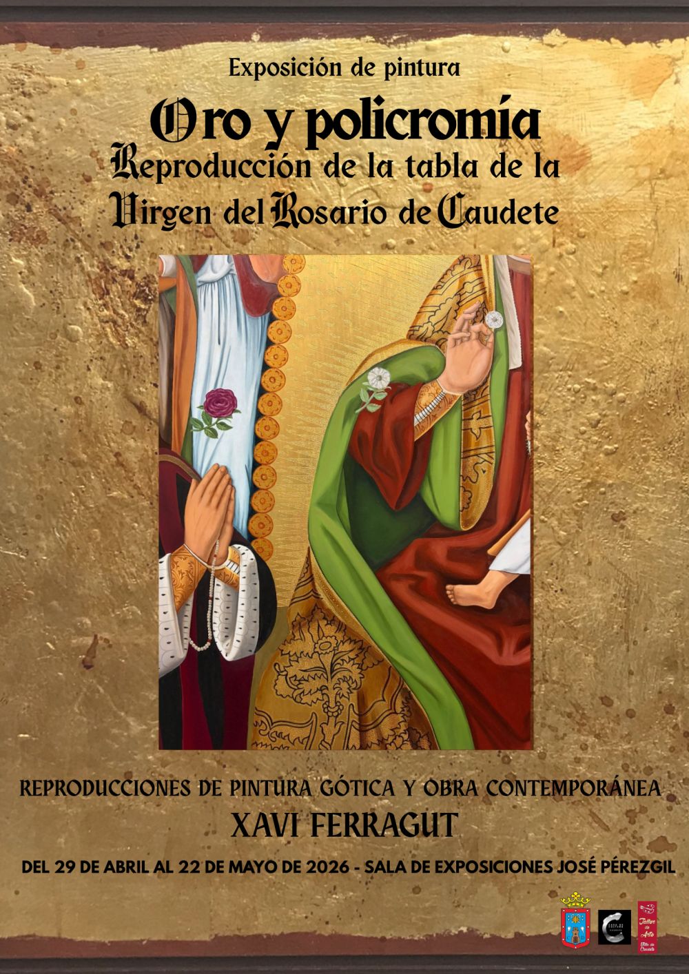 La Concejalía de Cultura, se complace en anunciar la inauguración de la exposición “Oro y policromía. Reproducción de la tabla de la Virgen del Rosario de Caudete”, una ambiciosa propuesta del artista y doctor en Conservación y Restauración, Xavier Ferragud. La muestra abrirá sus puertas el próximo miércoles 29 de abril en la Sala de Exposiciones José Pérezgil a las 20:00 horas.