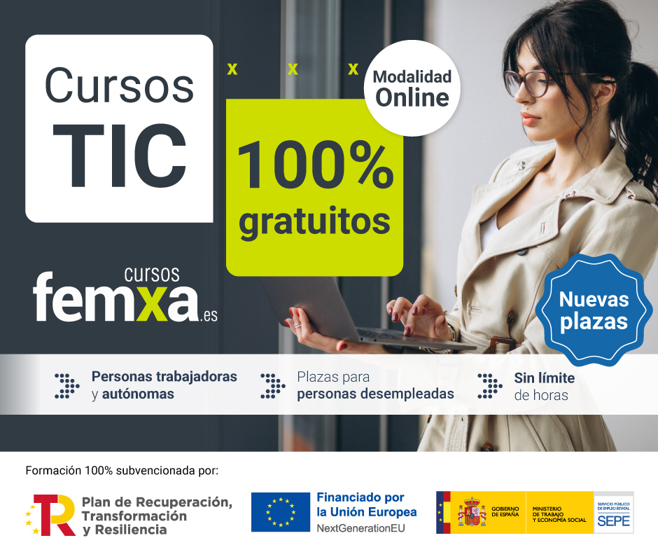 • Cursos de digitalización para personas trabajadoras y desempleadas: https://www.cursosfemxa.es/cursos-tic-basico