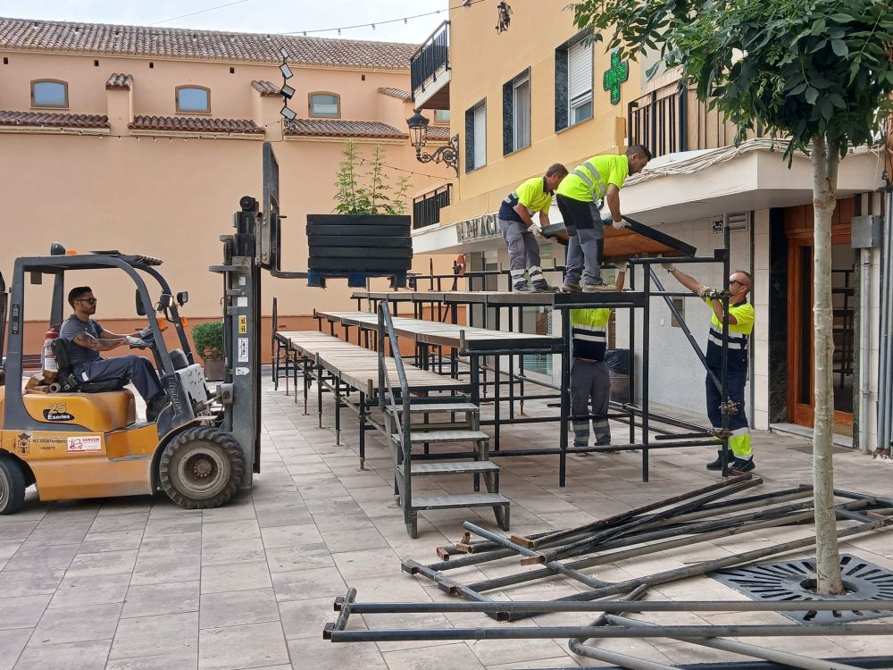 La Brigada de Obras continua de forma intensa su acción en la calle, atendiendo las necesidades propias del Departamento, y reforzando el trabajo para instalar todas las infraestructuras necesarias para las Fiestas Patronales.