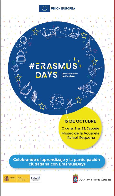 El Ayuntamiento de Caudete informa de la celebración de sus Jornadas ErasmusDays 2025, el próximo día miércoles, 15 de octubre, de 10.00 a 14.30 horas, en el Museo de la Acuarela Pintor Rafael Requena de la localidad.