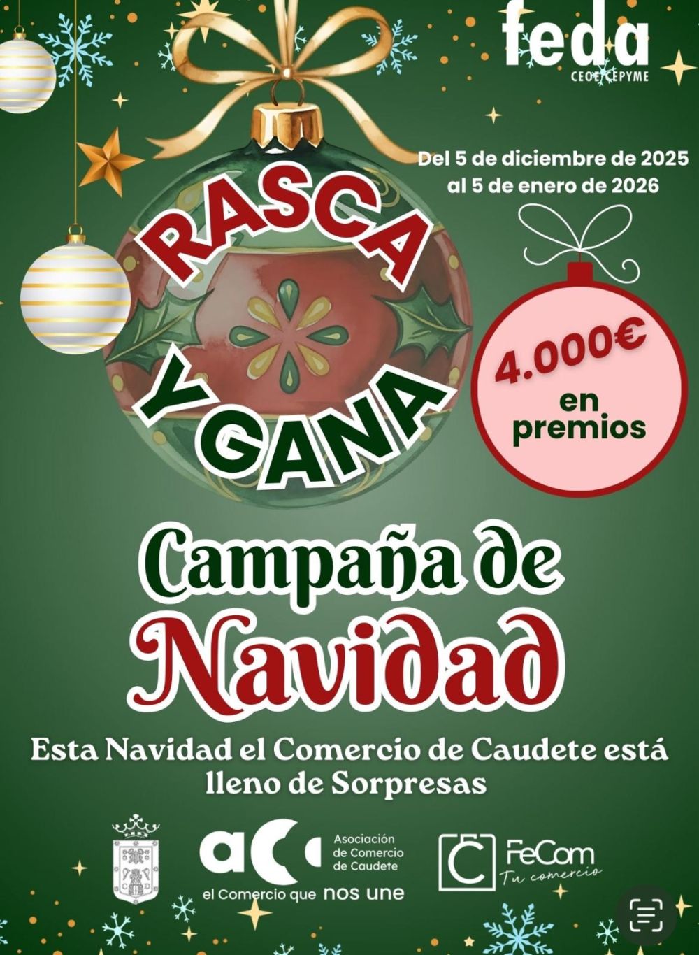 El concejal de Comercio del M.I. Ayuntamiento de Caudete, Diego Cuenca Olivares, ha presentado la campaña de Navidad del comercio local «Rasca y Gana», una iniciativa subvencionada por la Concejalía de Comercio, que se desarrollará del 5 de diciembre al 5 de enero.