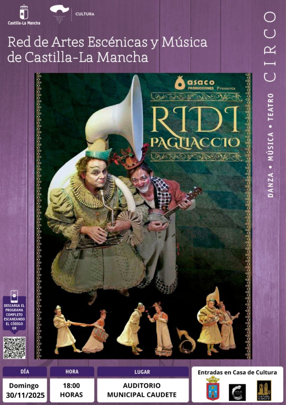 La Concejal de Cultura del M.I. Ayuntamiento de Caudete, Manuela González Solera, presenta la llegada a nuestra localidad de uno de los espectáculos más aclamados dentro del ciclo provincial de circo impulsado por Cultural Albacete y enmarcado en la Red de Artes Escénicas de la JCCM – Otoño 2025. Se trata de “Ridi Pagliaccio”, de la compañía extremeña Asaco Producciones, una deliciosa y conmovedora propuesta para todos los públicos.