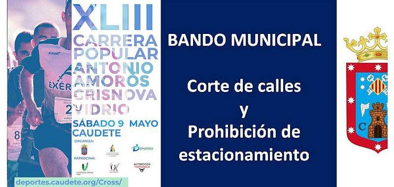 El Alcalde José Miguel Mollá, con motivo de la celebración de la XLIII edición del Cross Antonio Amorós , ha emitido un BANDO MUNICIPAL con el objeto de dar mayor alcance a la población acerca de las calles afectadas y por tanto se ven afectadas de forma temporal al tráfico y al estacionamiento de vehículos.